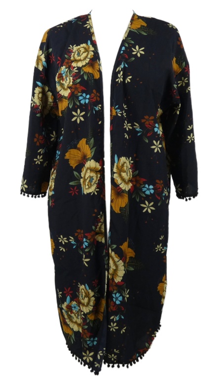 Dámský tmavomodrý květovaný cardigán s ozdobným lemem Shein