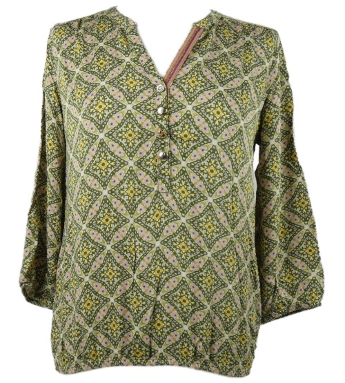 Dámská khaki-růžová vzorovaná balonová halenka Cartoon