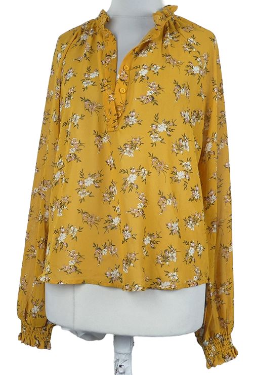 Dámská okrová květovaná šifonová crop halenka Na-KD