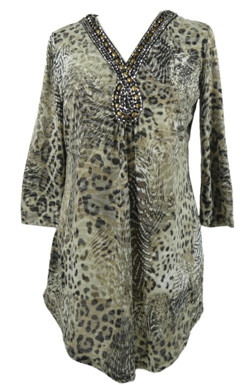 Dámská béžovo-hnědá vzorovaná tunika s kamínky C&A