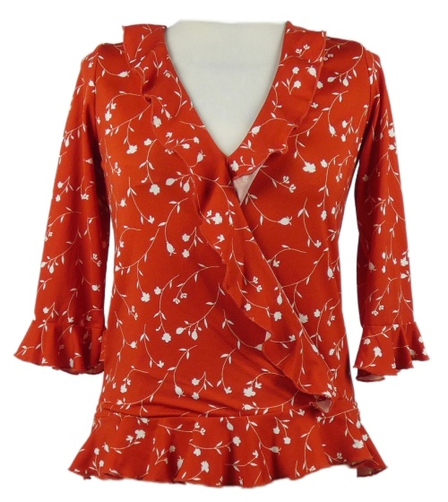 Dámská červená kytičkovaná halenka s volánky Amisu