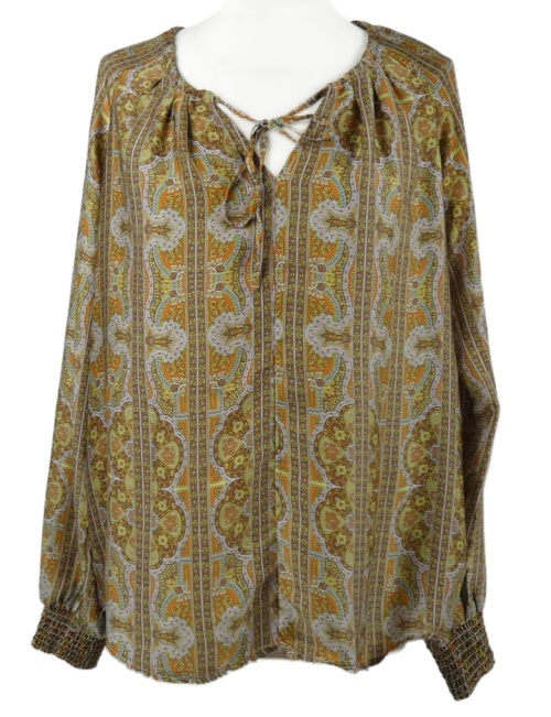 Dámská hnědo-zeleno-oranžová vzorovaná volná halenka H&M