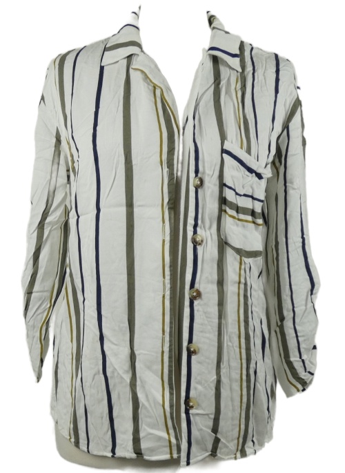 Dámská bílo-khaki-tmavomodrá pruhovaná halenka s rolovacími rukávy C&A