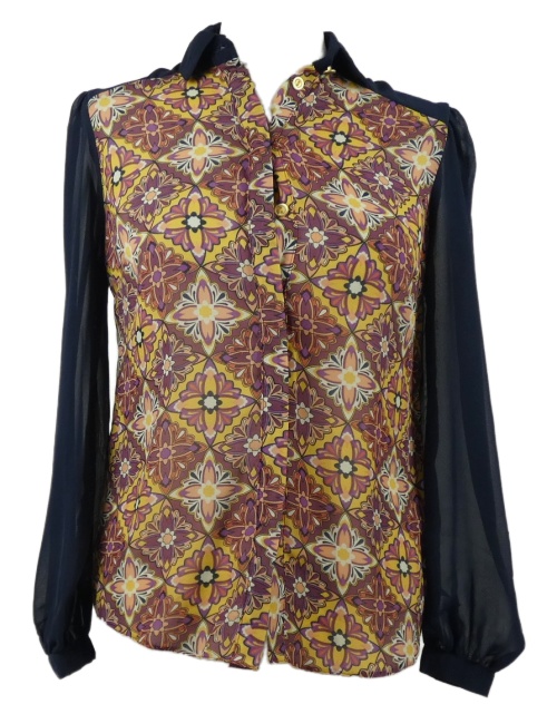 Dámská vínovo-tmavomodro-žlutá vzorovaná šifonová halenka Atmosphere