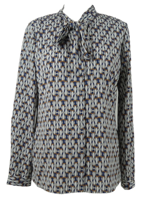 Dámská šedo-tmavomodro-oranžová vzorovaná halenka s vázačkou C´st Paris