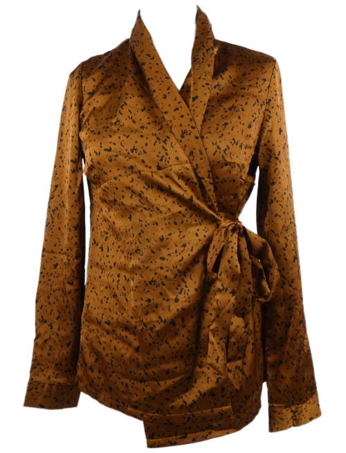 Dámská skořicovo-černá vzorovaná saténová zavinovací halenka PrettyLittle Thing