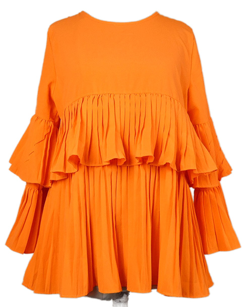 Dámská neonově oranžová plisovaná halenka s volánem Luzabelle