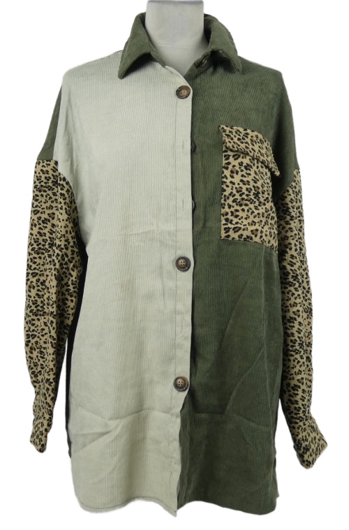 Dámská khaki-smetanovo-vzorovaná manšestrová halenka Shein