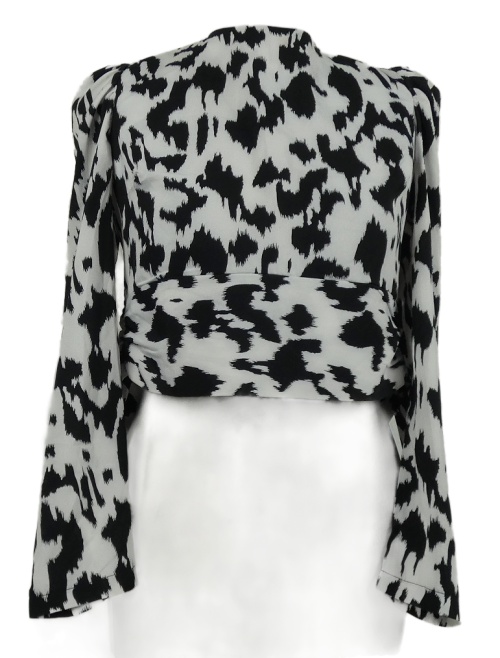 Dámská bílo-černá vzorovaná zavinovací crop halenka Shein