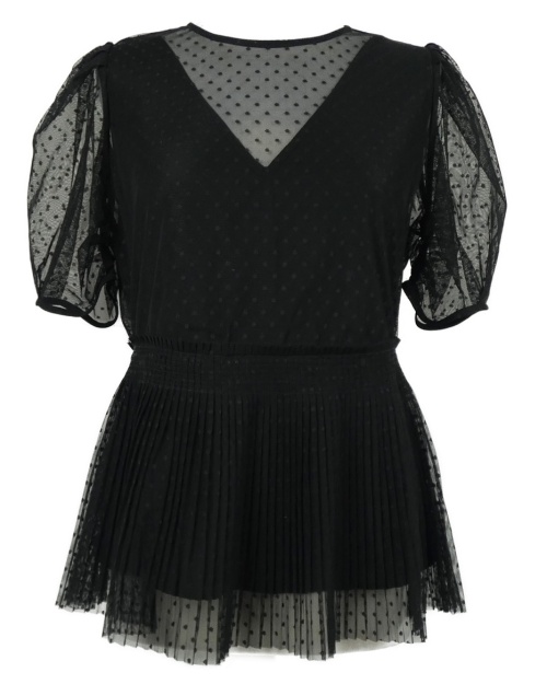 Dámská černá puntíkovaná tylová plisovaná halenka M&S