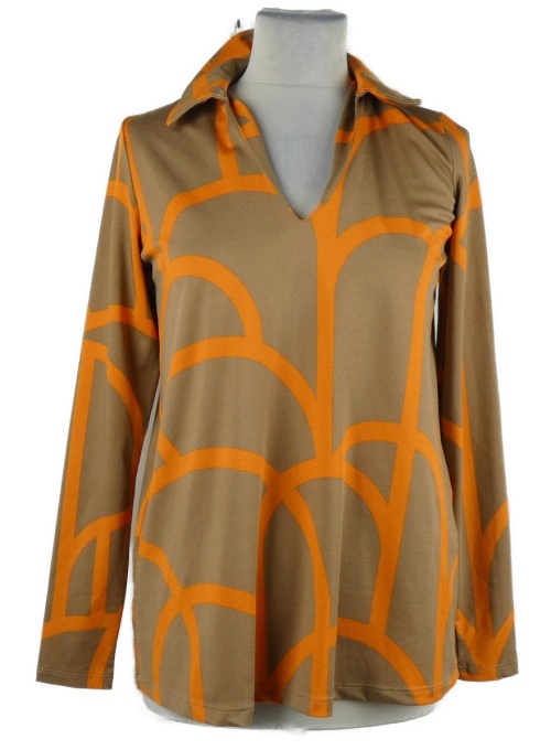Dámská béžovo-oranžová vzorovaná halenka s límečkem Amisu