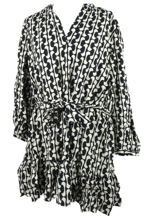 Dámská černo-béžová vzorovaná šatová tunika s páskem Zara
