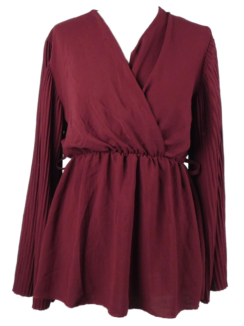 Dámská karmínové překřížená halenka s plisovanými rukávy