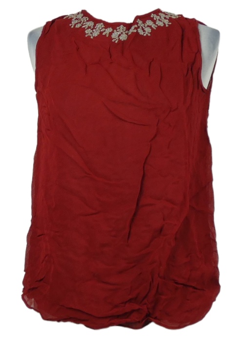 Dámská tmavočervená šifonová halenka s výšivkou Zara