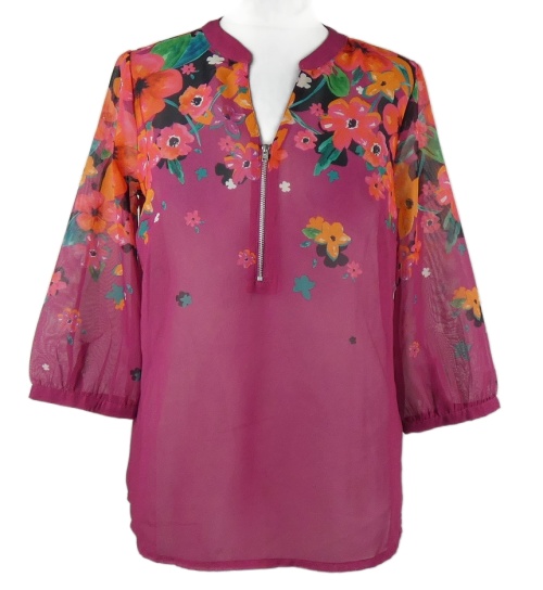 Dámská tmavorůžová květovaná šifonová halenka Kaleidoscope