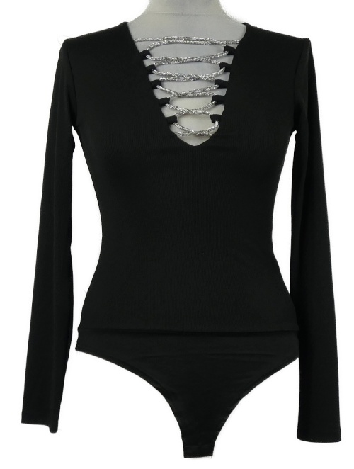 Dámské černé žebrované body se šněrováním Amisu