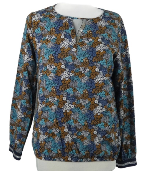 Dámská modro-hnědo-bílá vzorovaná balonová halenka Gina Benotti