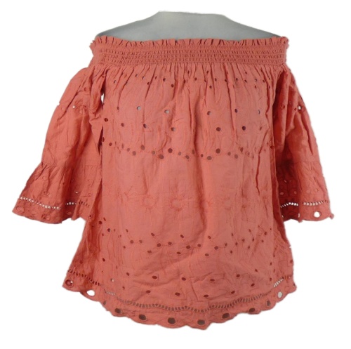 Dámská korálová madeirová halenka s lodičkovým výstřihem