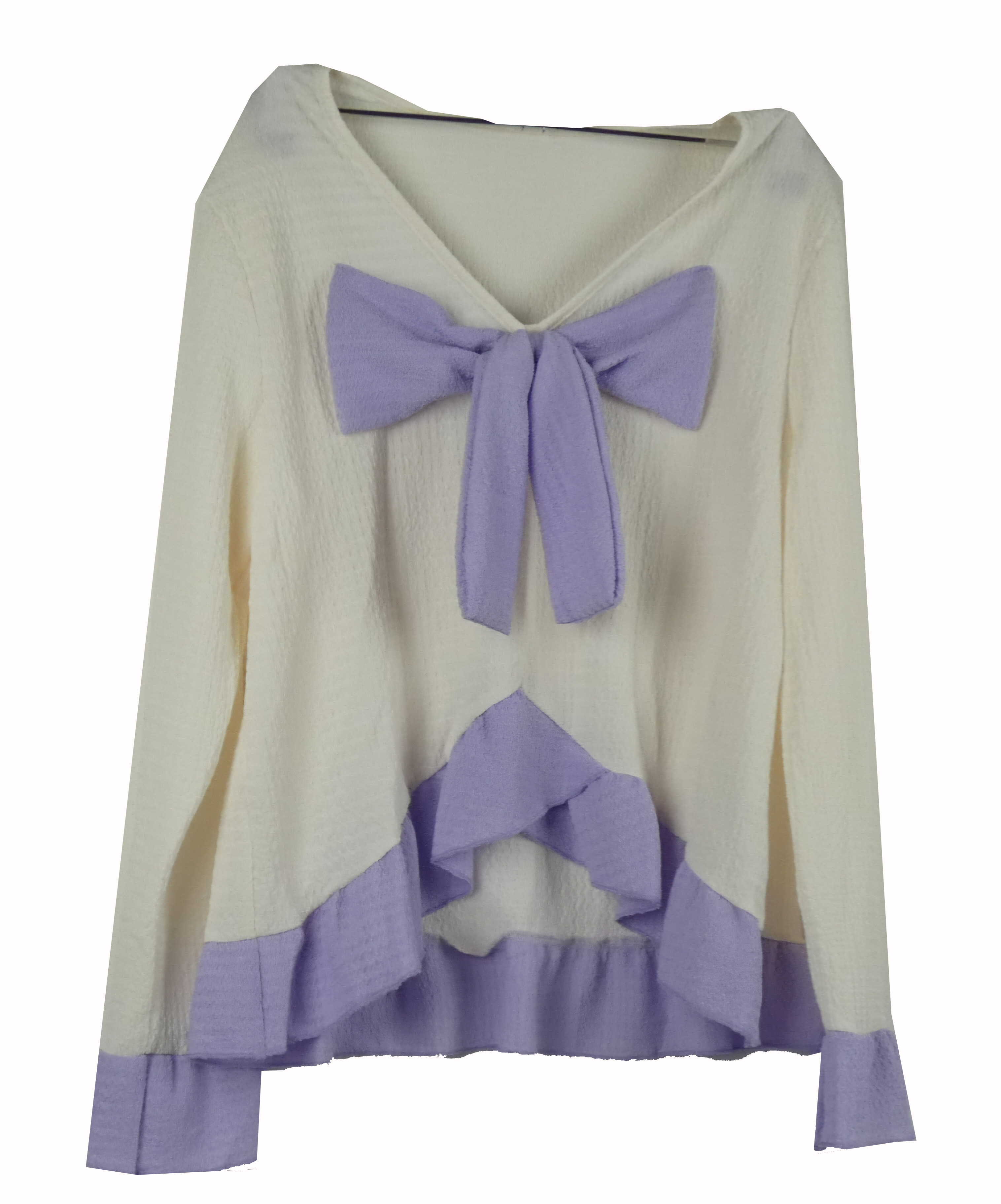 Dámská smetanovo-fialová strukturovaná halenka s mašlí