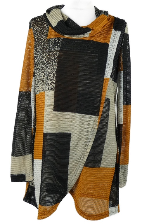 Dámská skořicovo-černo-béžová perforovaná halenka s límcem Izabel