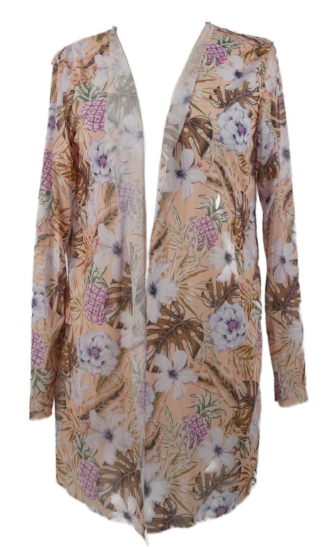 Dámský světlerůžový květovaný tylový cardigán