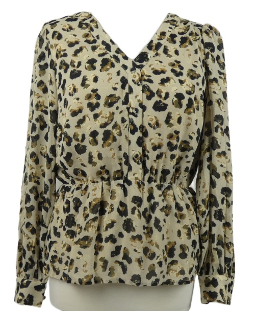 Dámská béžovo-černá vzorovaná šifonová peplum halenka