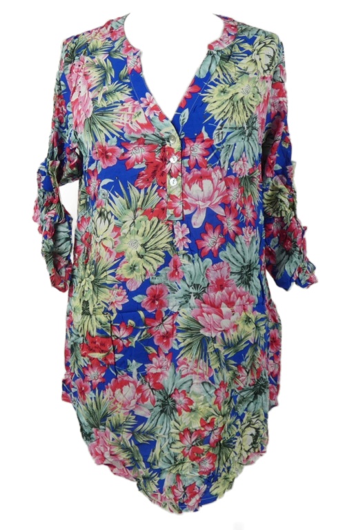 Dámská modro-růžovo-zelená květovaná halenková tunika s cvočky