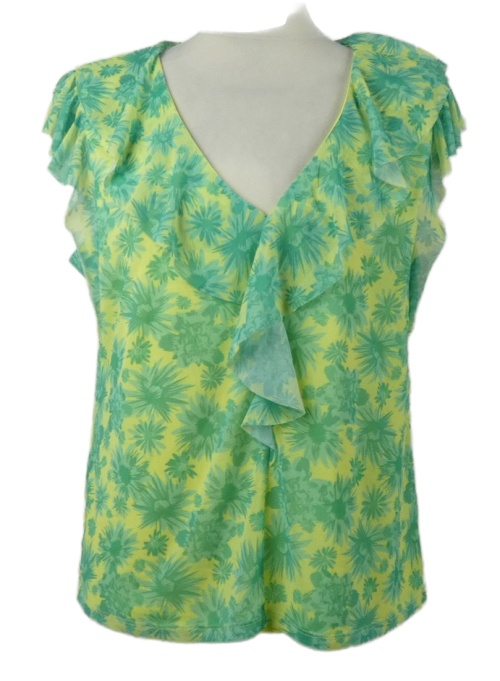 Dámská zeleno-žlutá květovaná tylová halenka s volánky Promod