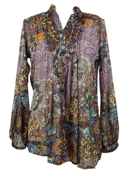 Dámská fialovo-barevná vzorovaná žoržetová halenka Wallis