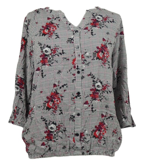 Dámská černo-bílo-růžová květovaná halenka Laura Torelli