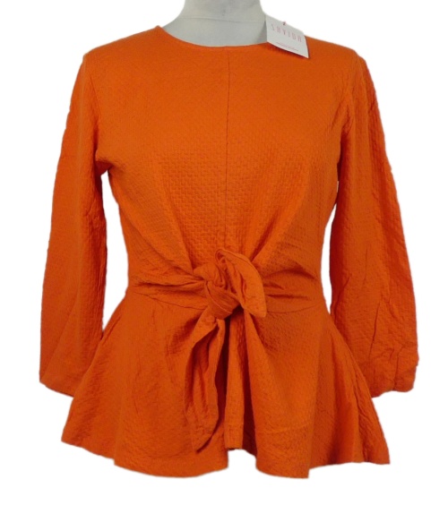 Nové - Dámská červená vzorovaná peplum halenka s mašlí Savida