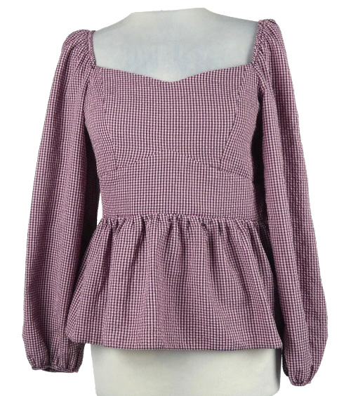 Nové - Dámská růžovo-černá kostičkovaná peplum krepová halenka New Look