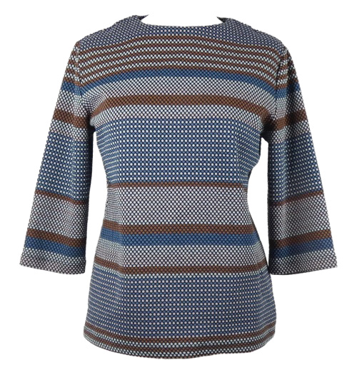 Dámská modro-hnědo-světlerůžová vzorovaná halenka