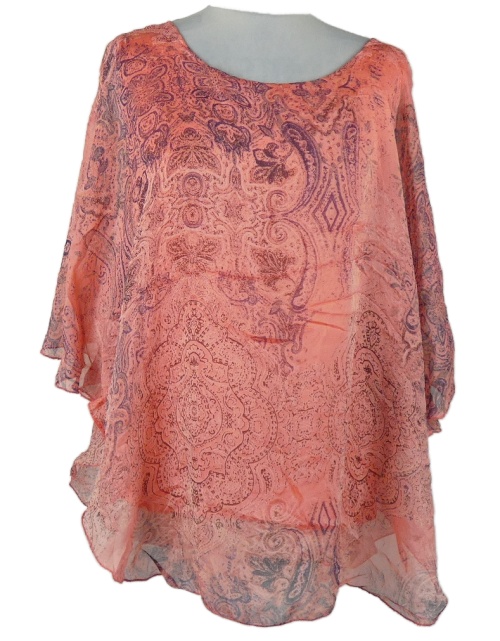 Dámská lososová vzorovaná hedvábná volná halenka Made in Italy