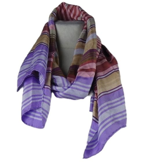 Dámská fialovo-červeno-béžová pruhovaná hedvábná šála