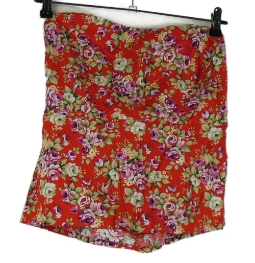 Dámský červený halenkový květovaný top bez ramínek