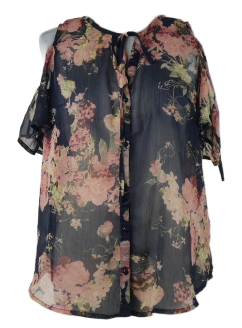 Dámská tmavomodro-růžová květovaná žoržetová halenka Lindex