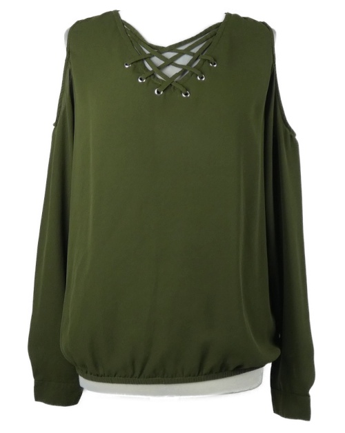 Dámská khaki halenka se šněrováním a průstřihy na ramenou Amisu