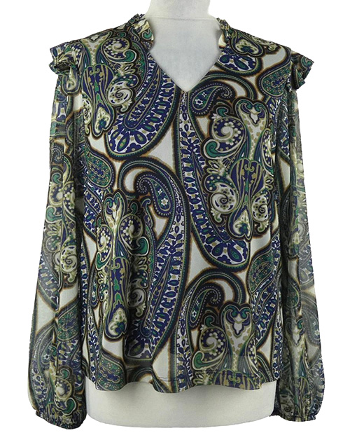 Dámská tmavomodro-zeleno-hnědá vzorovaná tylová halenka Next