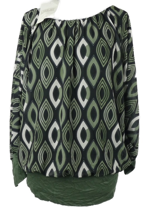 Nové - Dámská khaki-smetanovo-černá vzorovaná balonová halenka