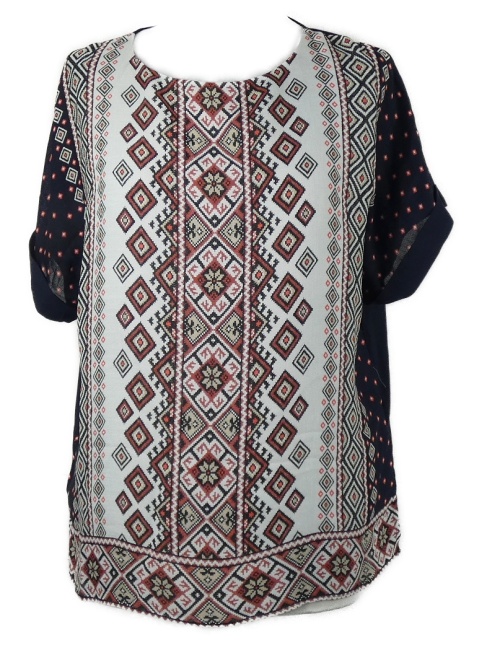 Dámská tmavomovo-bílo-červená vzorovaná halenka Oasis