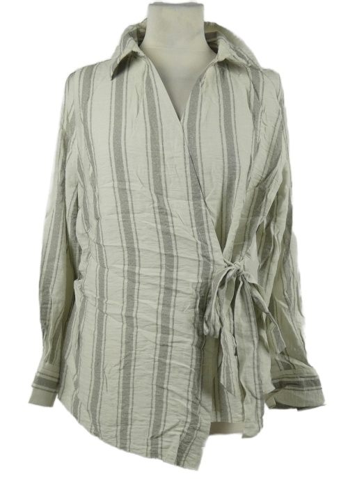 Dámská smetanovo-šedá pruhovaná zavinovací halenka