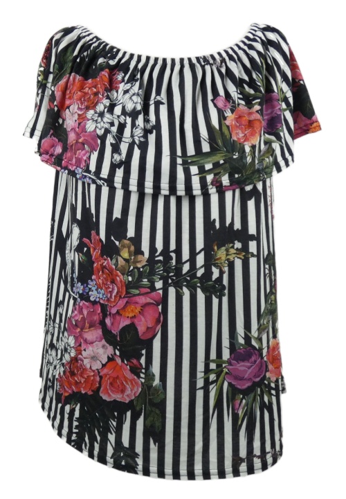 Dámská černo-bílá pruhovaná halenková tunika s květy a lodičkovým výstřihem Simply Be