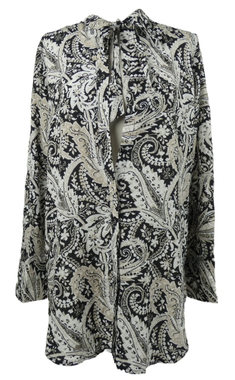 Dámská černo-béžová vzorovaná halenková tunika s vázačkou Comma