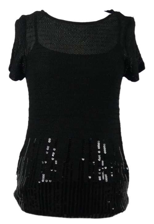 Dámské černé pletené tričko s flitry a všitým topem M&S