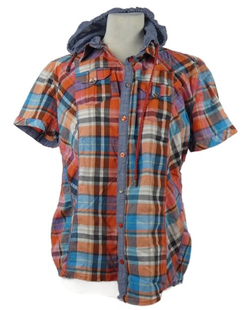 Dámská barevná kostkovaná halenka s odepínací kapucí