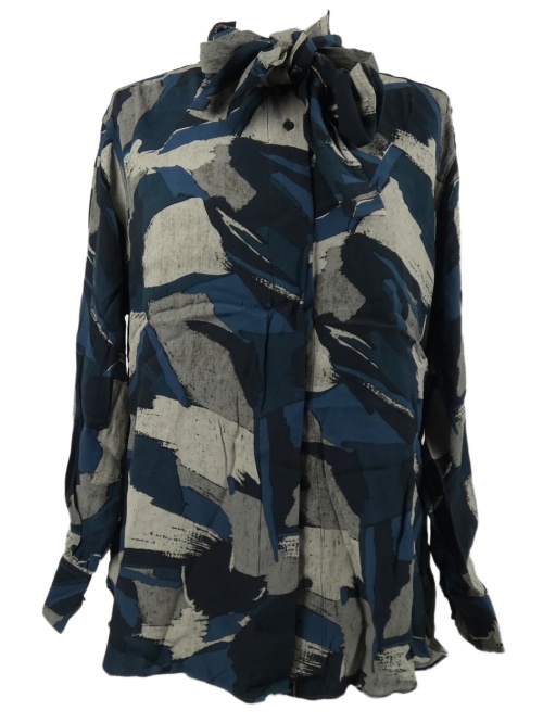 Dámská tmavomodro-béžová vzorovaná halenka s mašlí