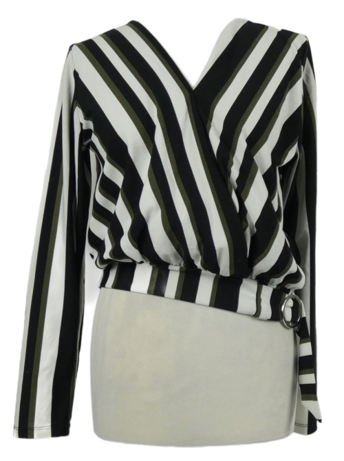 Dámská černo-khaki-bílá pruhovaná crop halenka Amisu