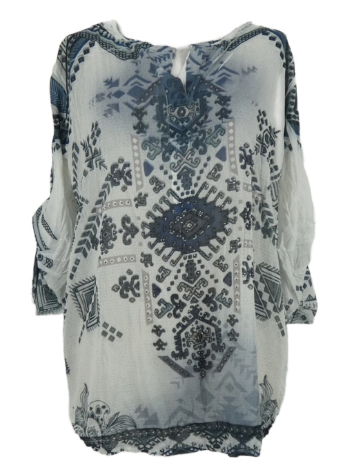 Dámská bílo-tmavomodrá vzorovaná šifonová halenka s kamínky