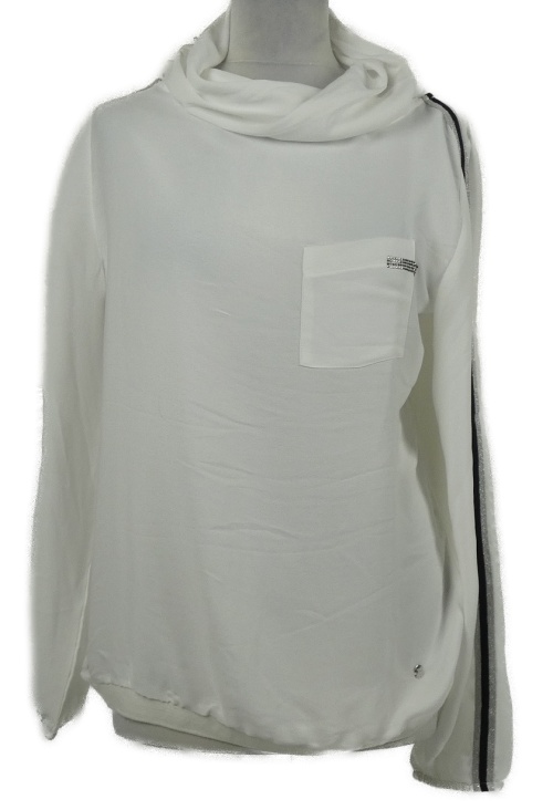 Dámská bílá halenka s komínovým límcem a pruhy Monari